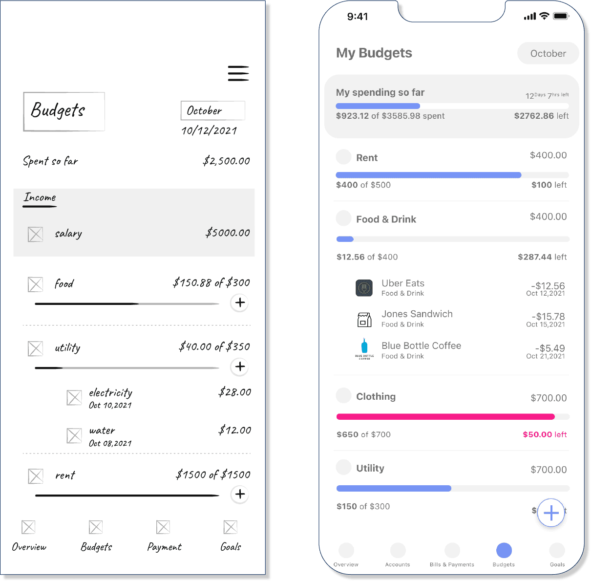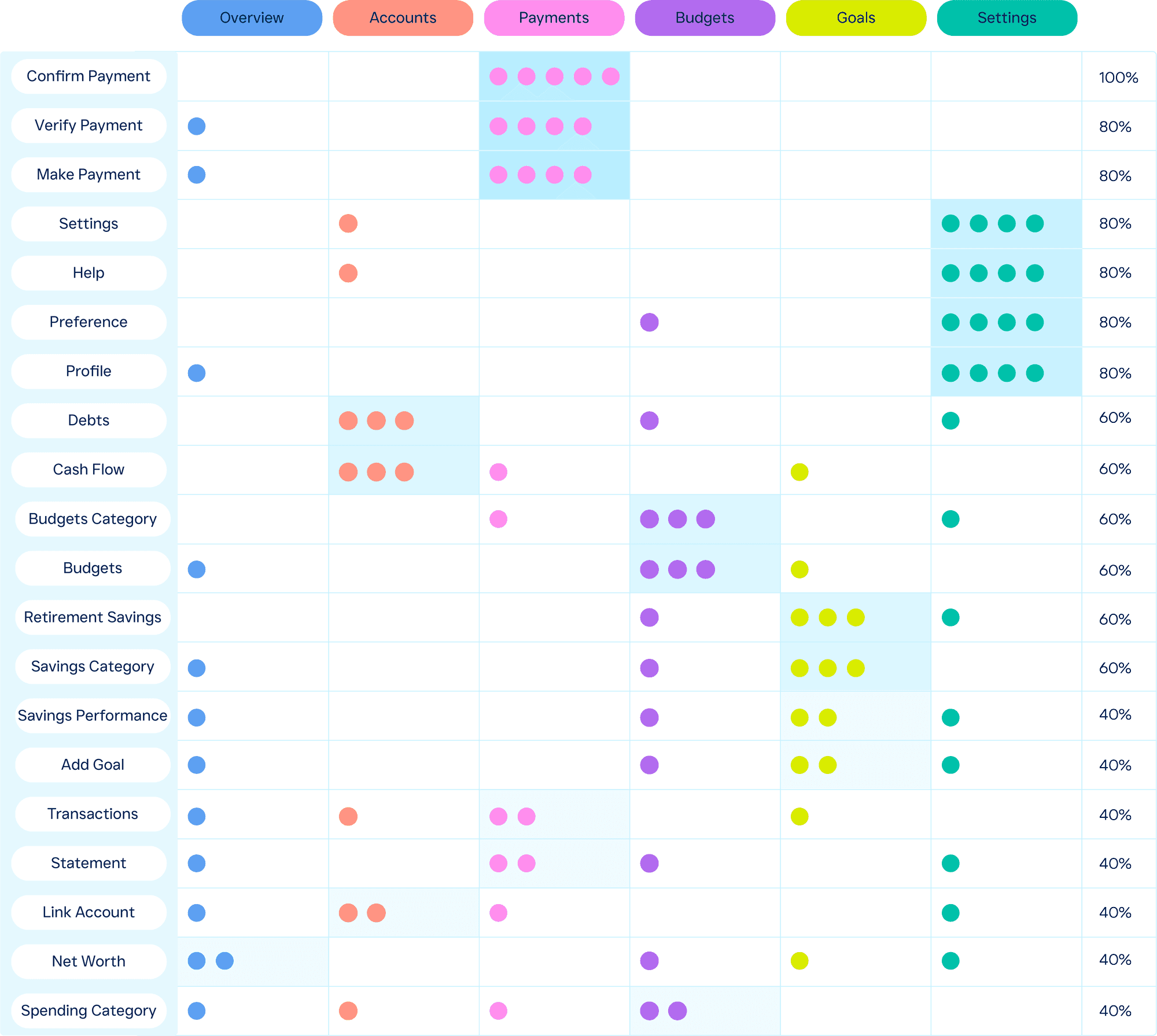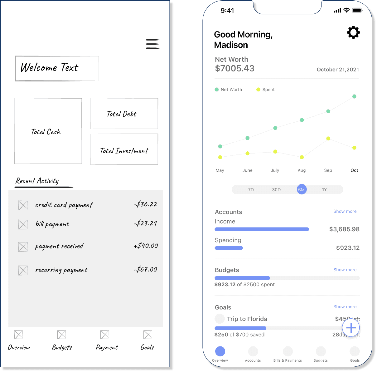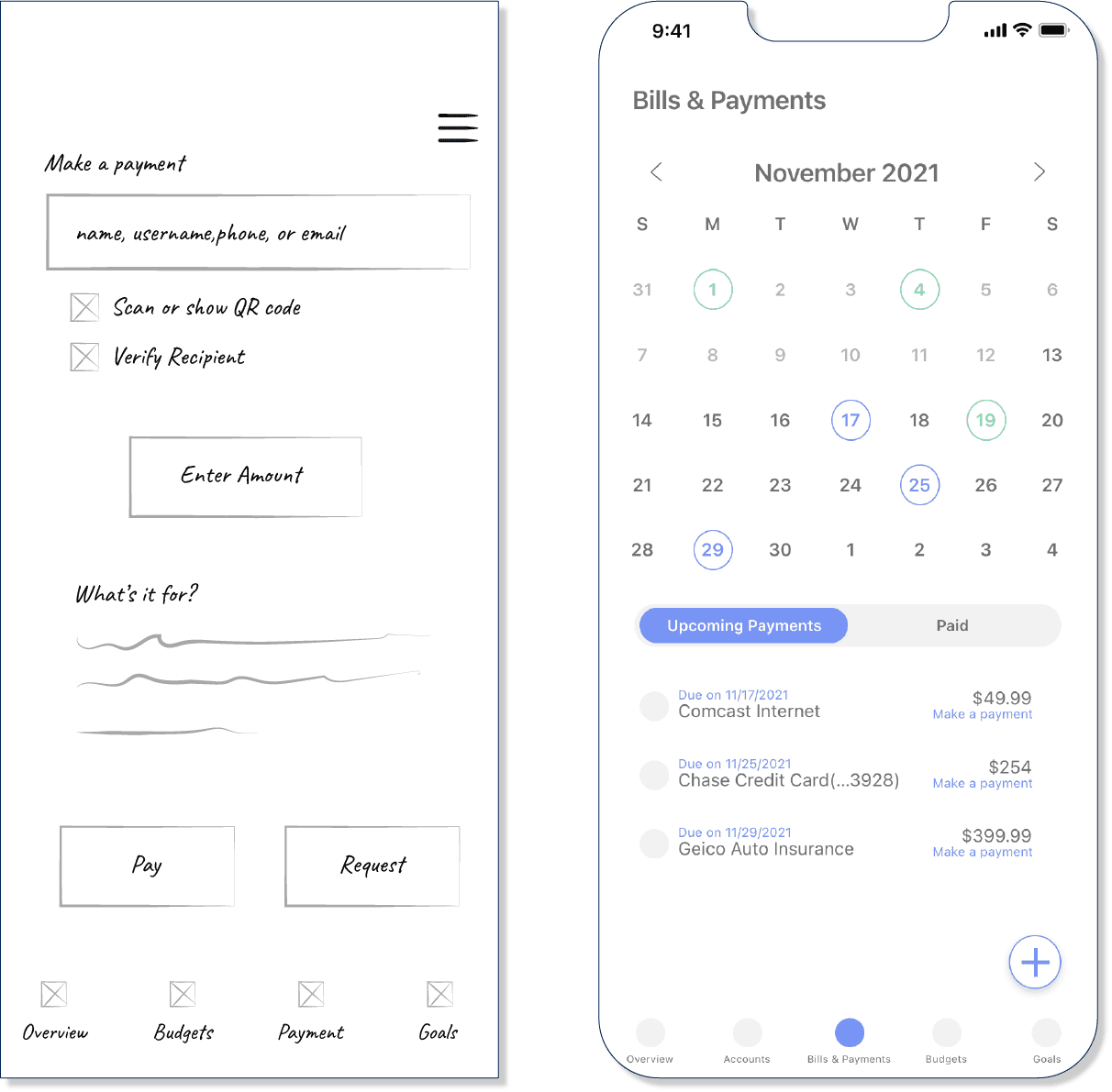 FIG users need an intuitive way to manage their personal finances. Success is measured by a 20% ↑ in savings within 3 months and a ↓ to 3% in late payment fees.