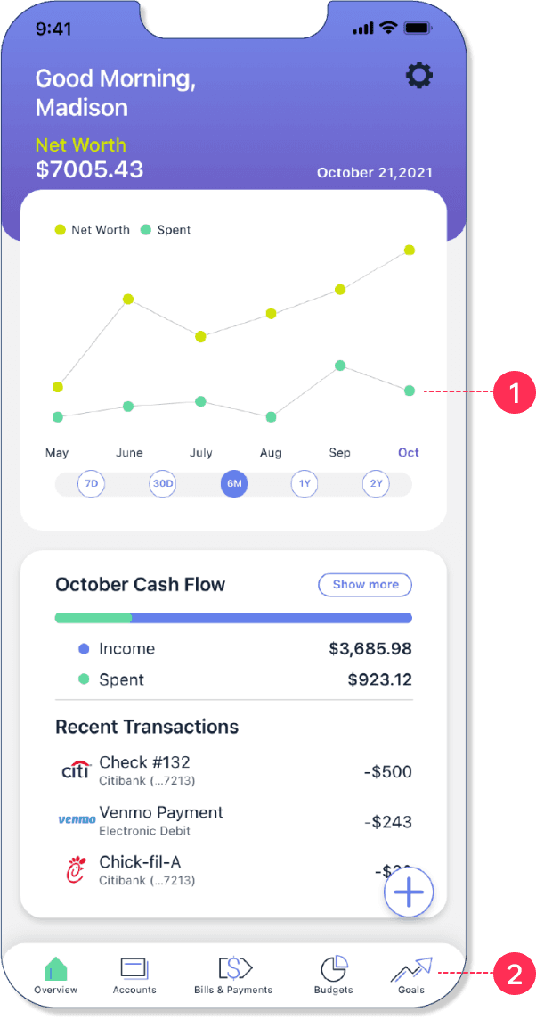 a personal finance app that lets users track spending, set budgets and savings goals, and pay bills in one place.